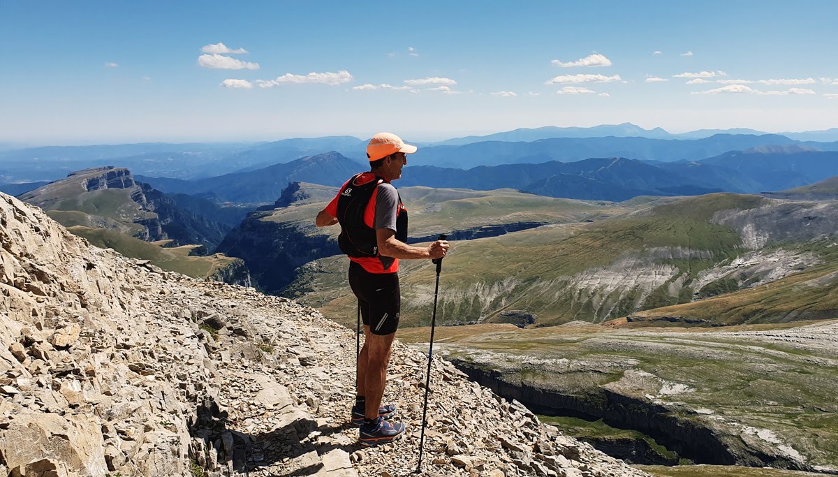 Jesús, contemplando las vistas hacia Pineta y La Larri, desde el collado de Añisclo